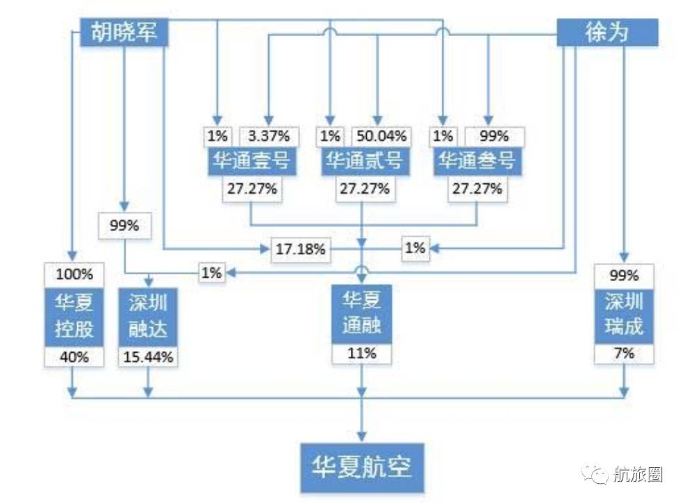股权结构:控股股东华夏控股,仅直接持有华夏航空40%的股本,但实际控制人胡晓军通过持有华夏控股、深圳融达、华夏通融以及通过太太徐为女士(一致行动人)间接控制了华夏航空总计 73.44%的股权。值得注意的是,华夏航空的部分管理层和老员工共95人通过重庆通融间接员工持股。