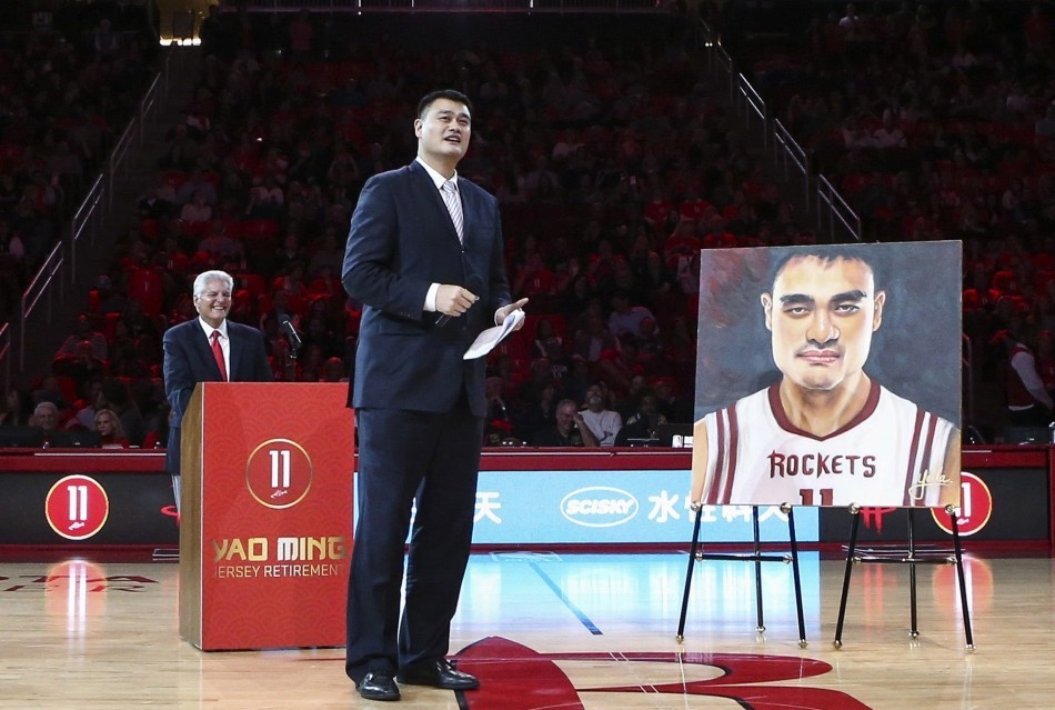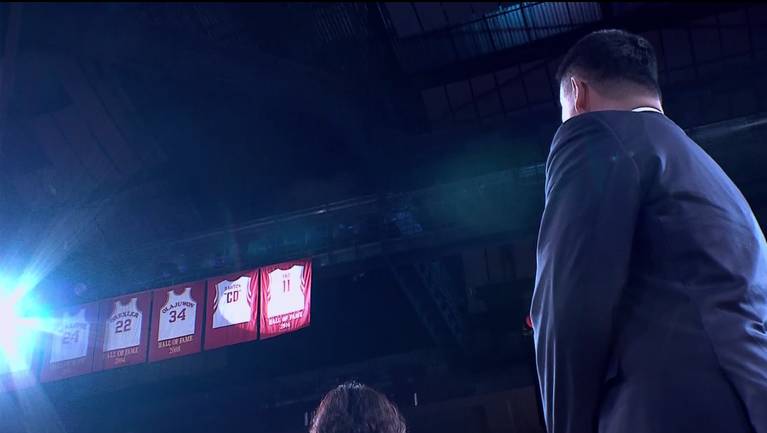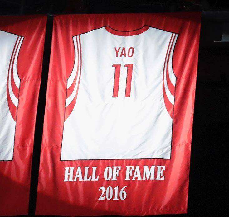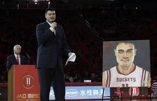 姚明的11号战袍与伟大的哈基姆-“大梦”-奥拉朱旺,摩西-马龙,“滑翔机”德雷克斯勒,卡尔文-墨菲,汤姆贾诺维奇,卡罗尔-道森并排而立,他成为了这支球队历史中最杰出的那些人之一。