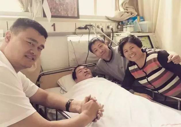 上面这两张图片背后有一个小故事:球迷大威高位截瘫,在病床上一趟就是九年。姚明探望过他,两人成为了好朋友。