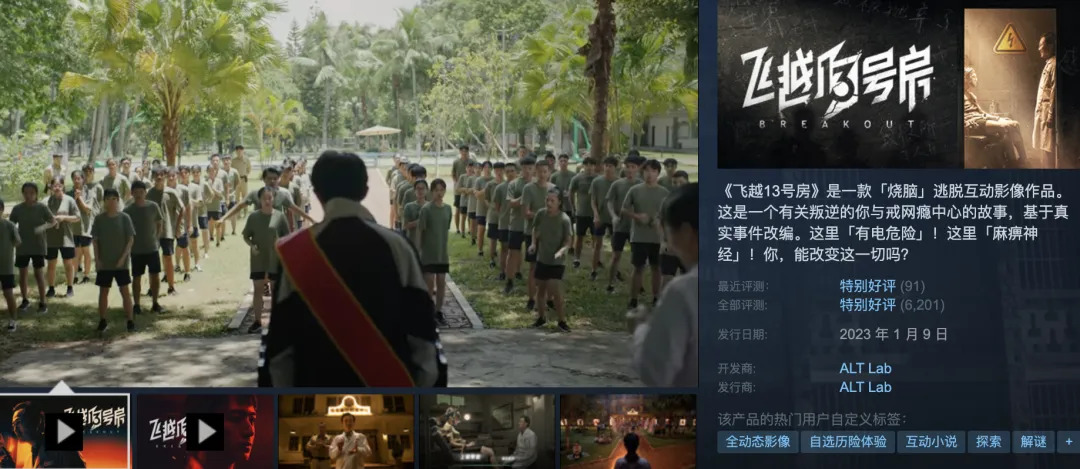 “我们成立的第一天开始,就在做产品的同时沉淀基础设施能力,包括游戏设计、技术开发、发行运营能力,希望可以赋能同行。去年《完蛋》和《飞越13号房》双双进入Steam平台国产销量榜单前10,很多做互动内容的人更有信心了,他们都想通过和我们合作参与到行业中。”