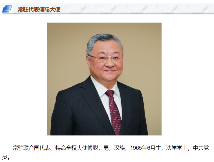 据中国常驻联合国代表团网站,傅聪已任中国常驻联合国代表、特命全权大使。