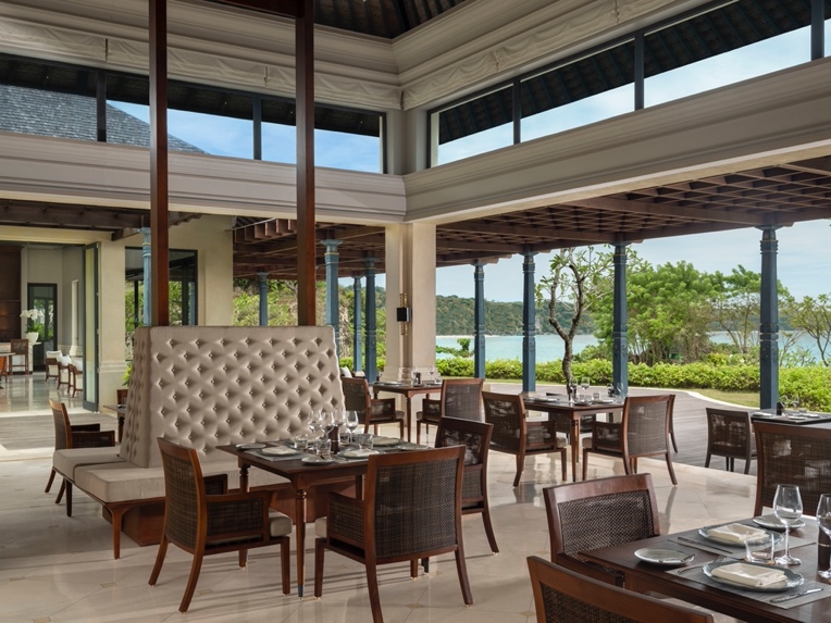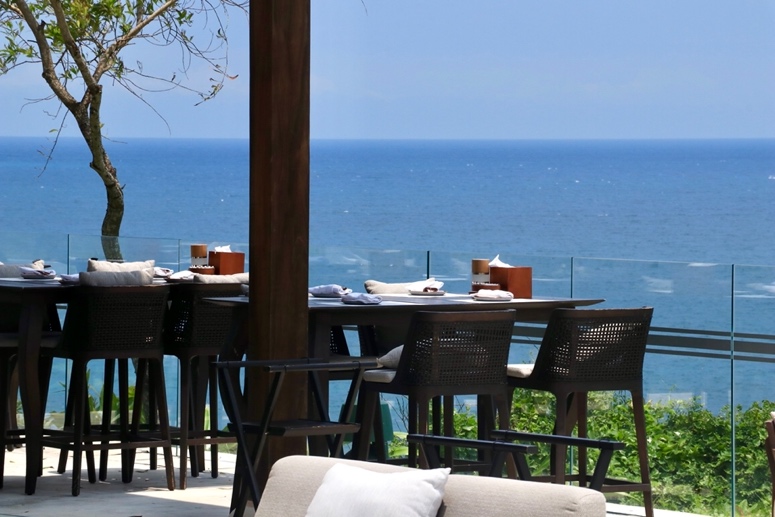 本次旅途体验率最高的餐厅当属SEGARAN 全日制餐厅,供应精致的巴厘岛和东南亚美食,以优质的食材打造一系列“农场到餐桌”佳肴。从天蓝色立柱组成的走廊进入餐厅内部,一望无际的是秋水共长天一色的壮丽美景,人们可在海风的洗礼和美景衬托下享用美食。