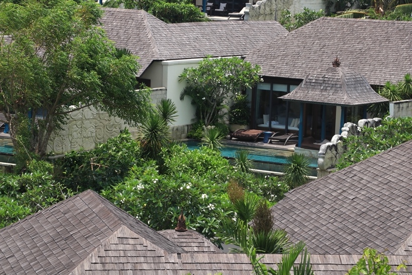 卓美亚巴厘岛酒店坐落于巴厘岛西南角的培卡图 (Pecatu) 地区,全部由别墅组成,优美的建筑在乌鲁瓦图 (Uluwatu) 海滩区域构成一道引人瞩目的风景线。这家位于悬崖旁的度假酒店由来自Grounds Kent Architect 建筑设计公司的 Martin Grounds,同Denniston International设计顾问公司的 Jean-Michel Gathy 合作设计,前者构想了这家酒店的整体建筑构思。重重叠叠包裹酒店的漫无边际的花园,则由已故的 Made Wijaya设计。