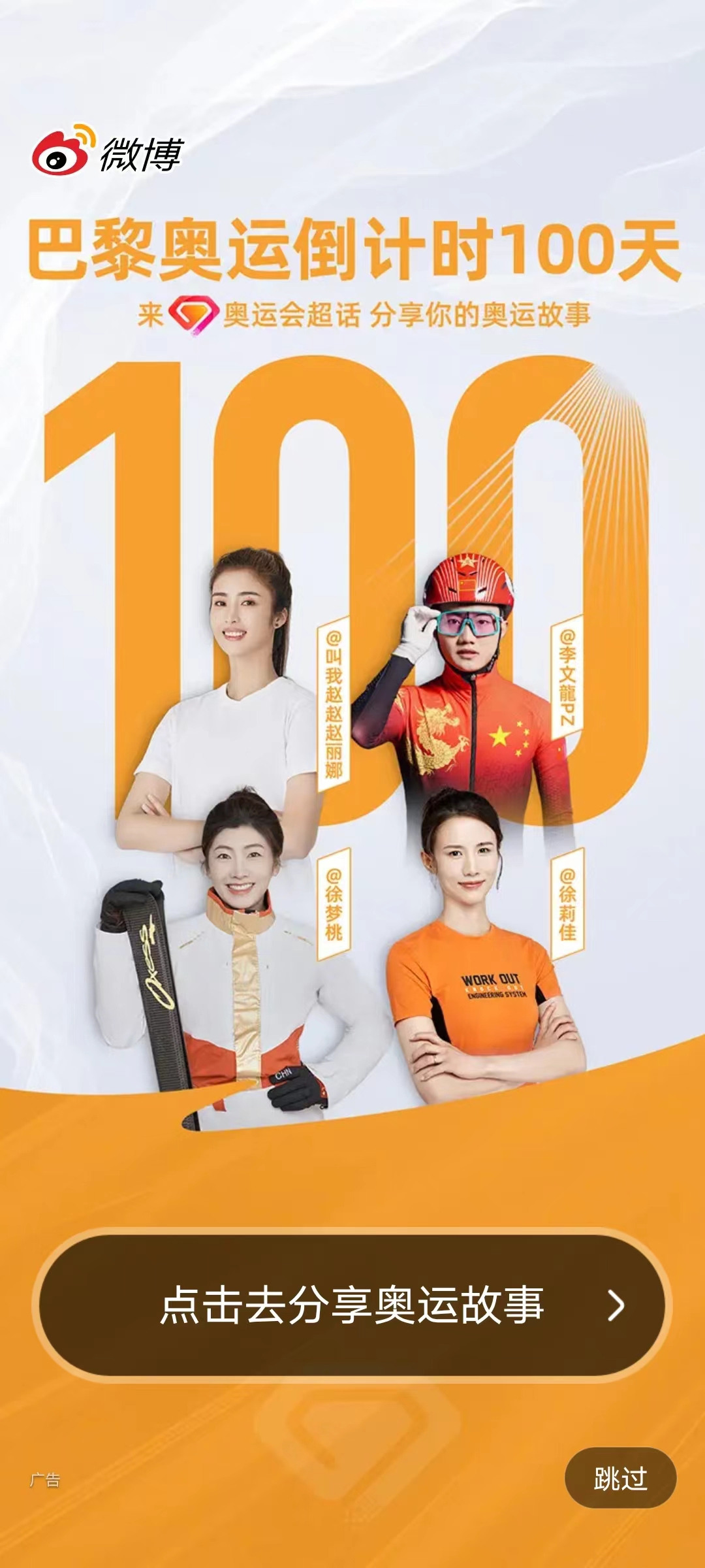 北京时间2024年4月17日,2024年巴黎奥运会进入倒计时100天。当日,微博、小红书等社交媒体平台都推送了相关热搜词条,多个中国运动员也在个人社交账号转发词条,为巴黎奥运会造势。