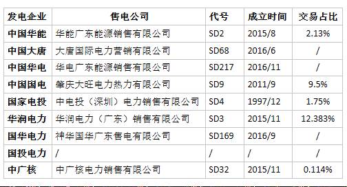 表1:五大四小发电企业布局广东售电市场