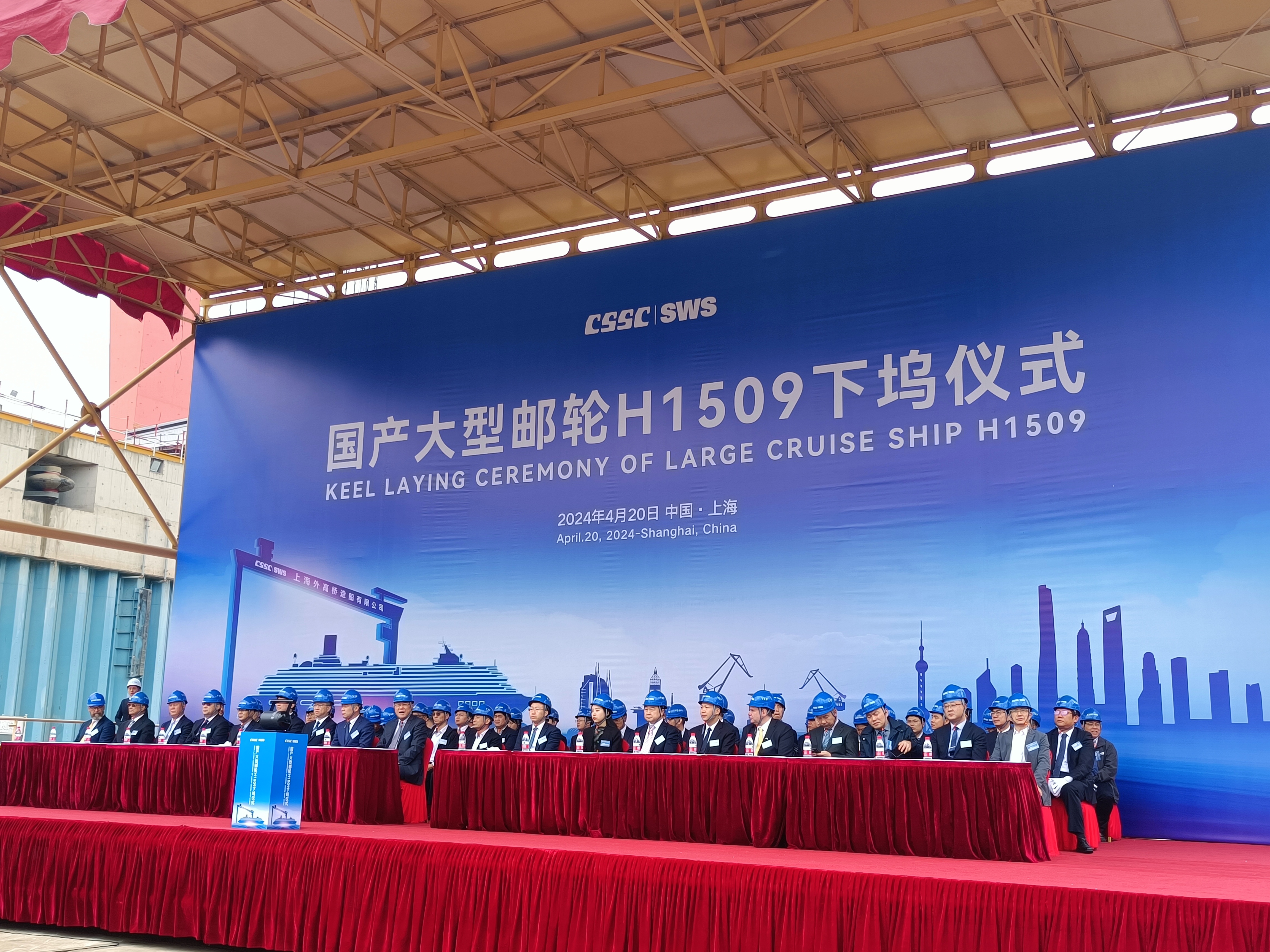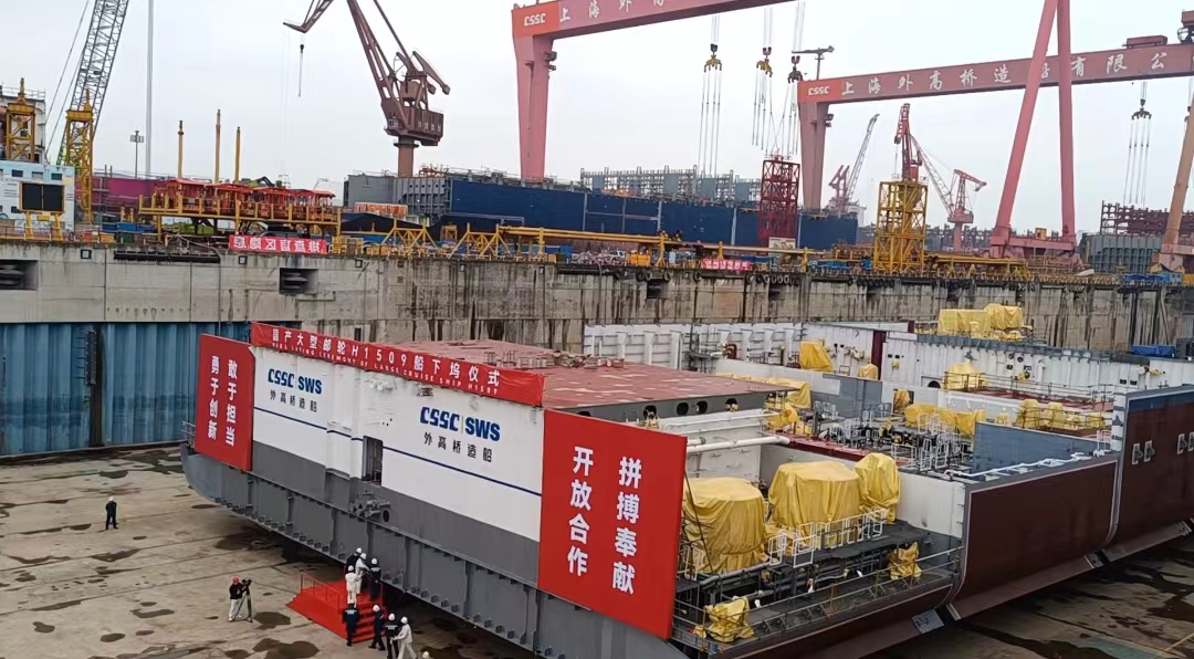 4月20日,中国船舶集团有限公司旗下上海外高桥造船有限公司2号船坞内,第二艘国产大型邮轮H1509船迎来下坞搭载总装节点。进入船坞后,船体分段将像搭积木一样快速拼接在一起,邮轮建造全面提速。