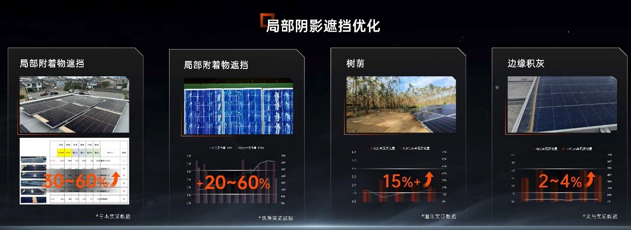 还有就是,如何给客户在各种应用场景中带来价值最大化。比如ABC独具的阴影遮挡优化功能,在很多场景上如树荫遮挡、局部附着或是积灰的情况下,可以有显著的发电量增益。