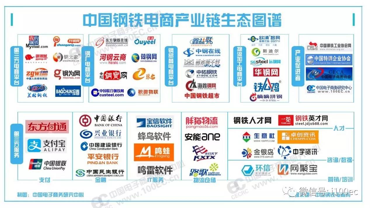 据中国钢铁电商网(www.100ec.cn/zt/steel)监测数据显示,目前行业出现像找钢网、上海钢联、中钢网、钢钢网、钢为网、兰格钢铁网、飞谷网等第三方电商平台;像东方钢铁在线、欧冶云商、河钢云商、荷钢网等钢厂电商平台;像鑫益联、西本新干线、中拓钢铁网等钢贸商电商平台;像欧浦智网、斯迪尔等物流加工企业电商平台。(文/刘彦希 微信互动:Lyxkoala)