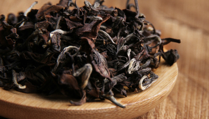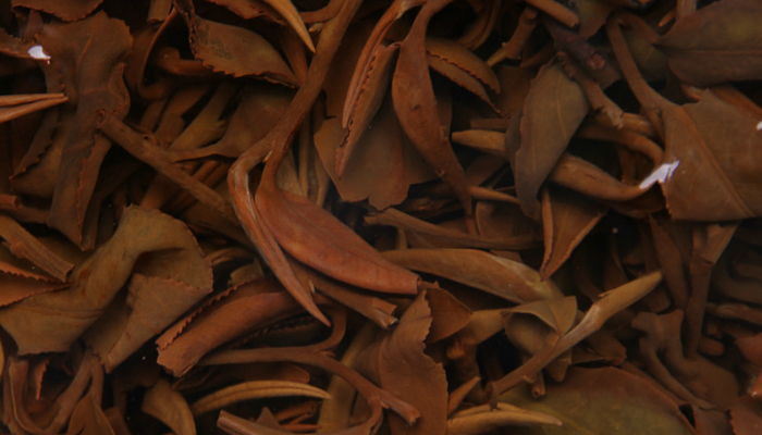 茶叶红褐油润,一芽二叶、三叶舒展开,茶叶较为柔软,枝叶相连、匀齐。
