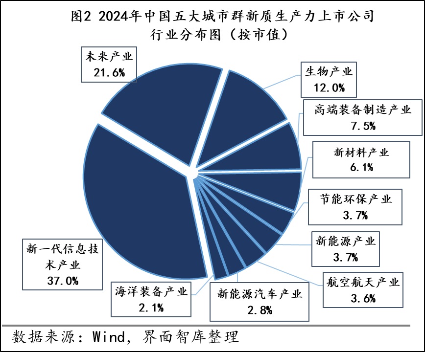 1、三大产业在五大城市群新质生产力上市公司中的合计数量占比近6成