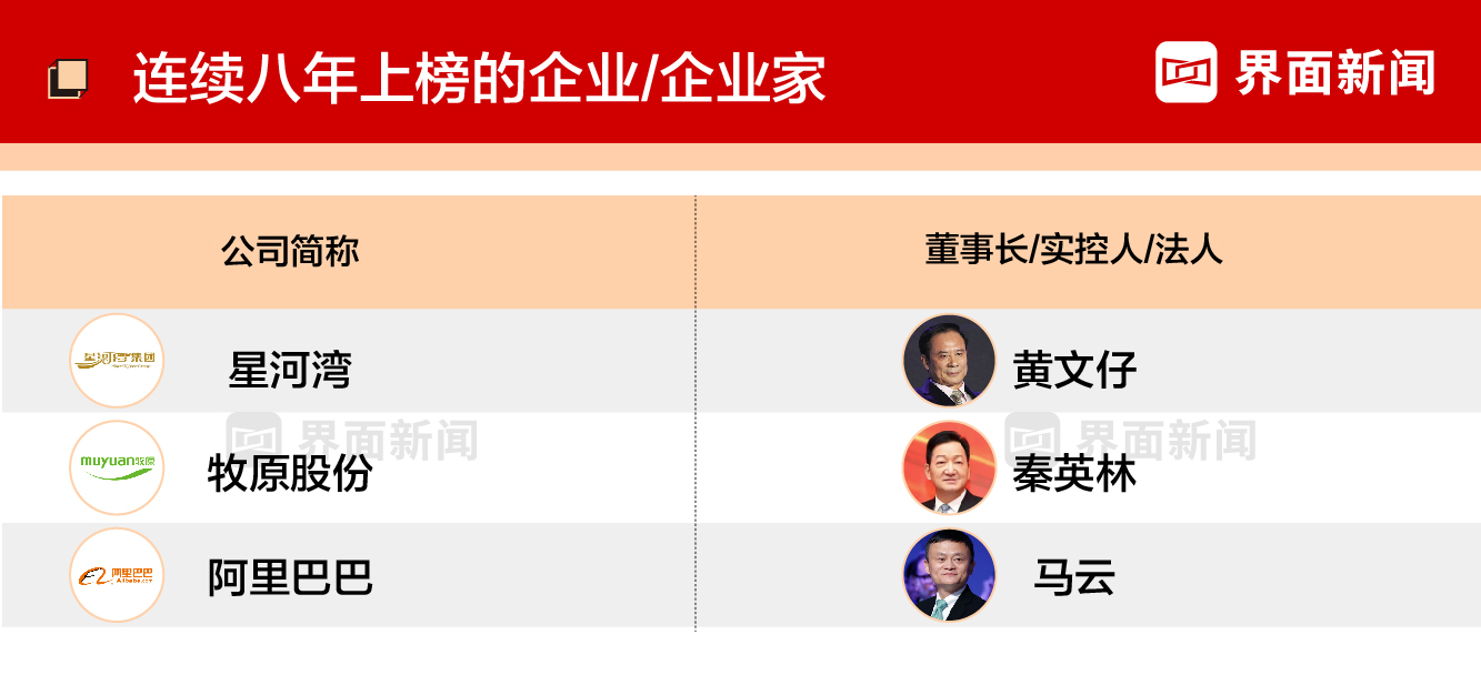 - 自界面新闻2017年第一次发布慈善企业家榜以来,八年来共计有534位企业家上榜,有3位企业家八年连续上榜。