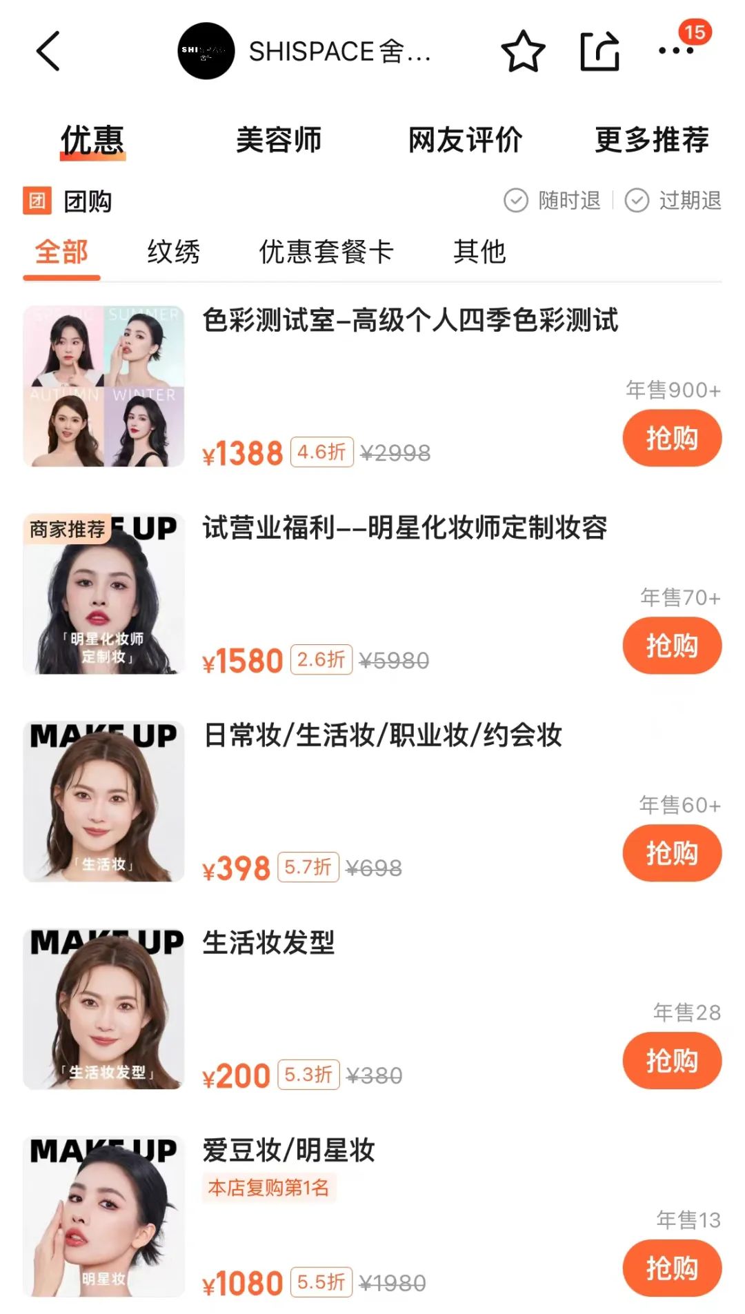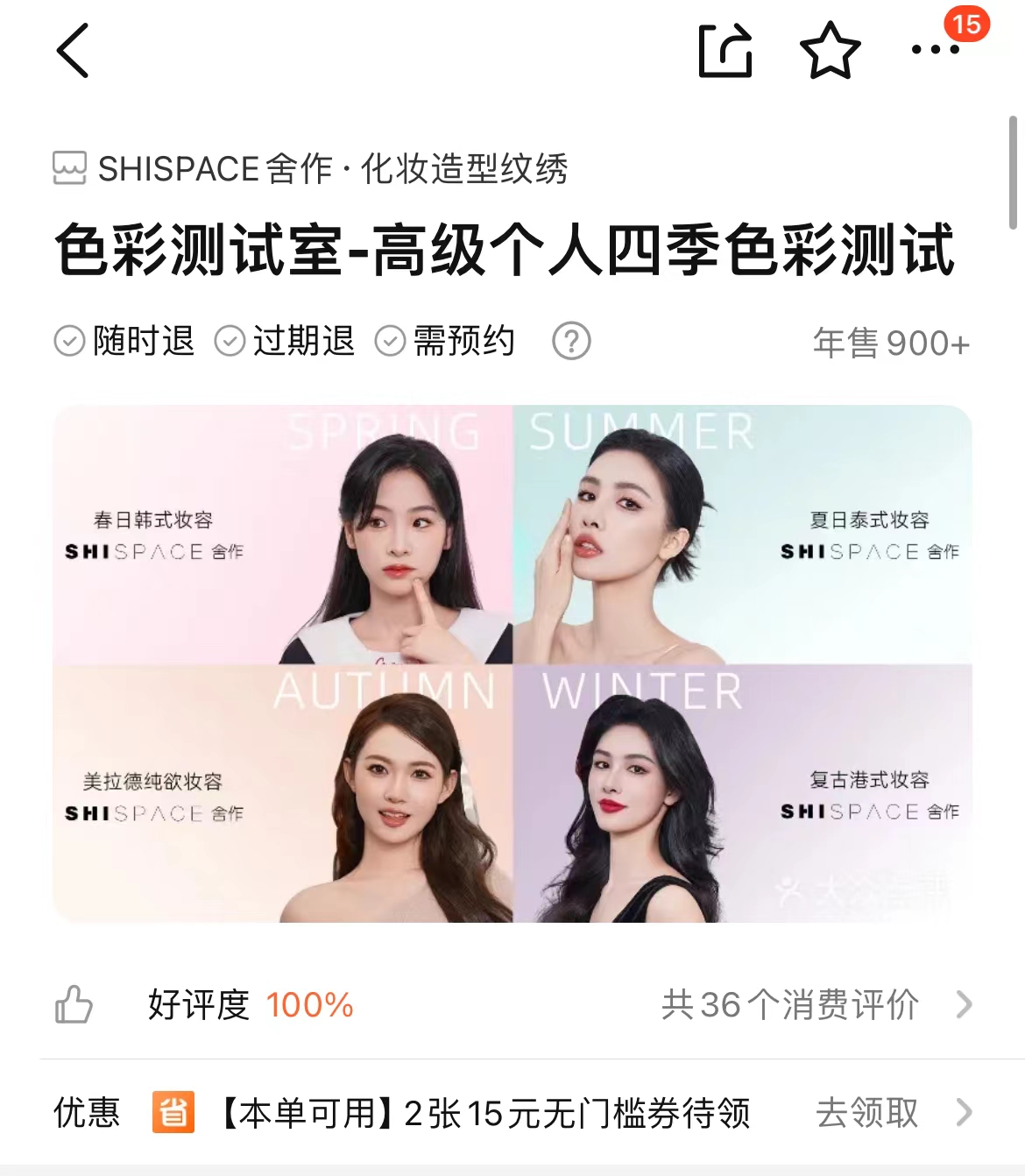 虽然从股权结构上看,所谓“郭敬明开的妆造店”,其实看起来更像是为朋友站台,但是在小红书及抖音的讨论上,关于“舍作”的色彩测试、“爆改”妆造的讨论一浪高过一浪。凭借“1400就能体验明星同款”的噱头,引得博主争相打卡,相关话题阅读量达41万。从大众点评的销量推算,仅凭1399元的色彩测试一项,900+的销量,“舍作”从1月开店至今收入已达125万。