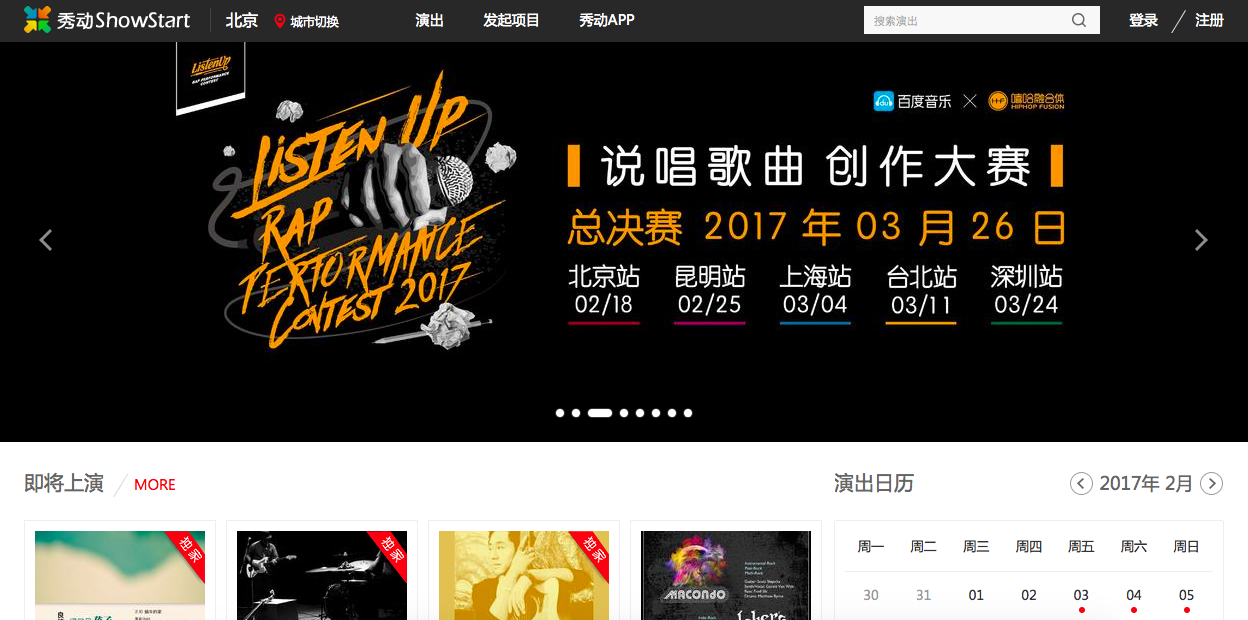 现场演出这门生意是赔是赚,除了艺人资源和渠道外,流量与观演人群亦是重要考量指标。独立音乐人的特立独行决定了其受众面更垂直、更小众。目前太合音乐正在尝试将秀动的演出资源与旗下百度音乐、百度音乐人、合音量进行深度整合。在百度音乐、百度音乐人的PC端与移动端、合音量的移动端都有秀动的演出活动展示,而这意味这逾5亿的音乐用户流量导入的想象空间。同时,秀动团队采取了较积极的推广策略——推出“带上你的朋友,秀动请你看演出”等社交类运营活动,让喜爱现场演出以及小众音乐人的用户,在平台获取音乐信息的同时,找到“同类”,增进用户粘性。