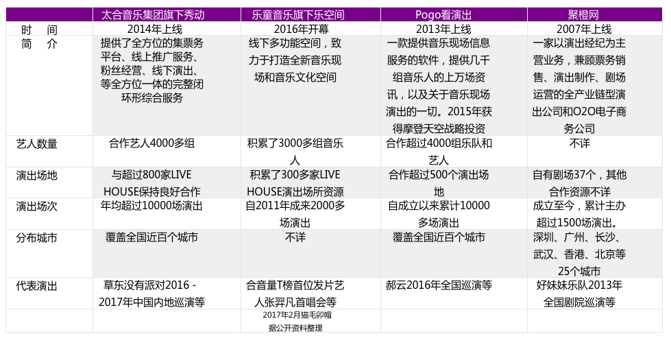 (3)专注于独立音乐垂直领域的,积极探索展演空间多元盈利模式的公司。