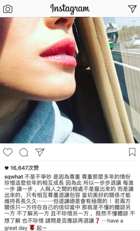 1、舒淇发文称“不懂体谅,不想了解,也不珍惜,请问是否应该再退让?”