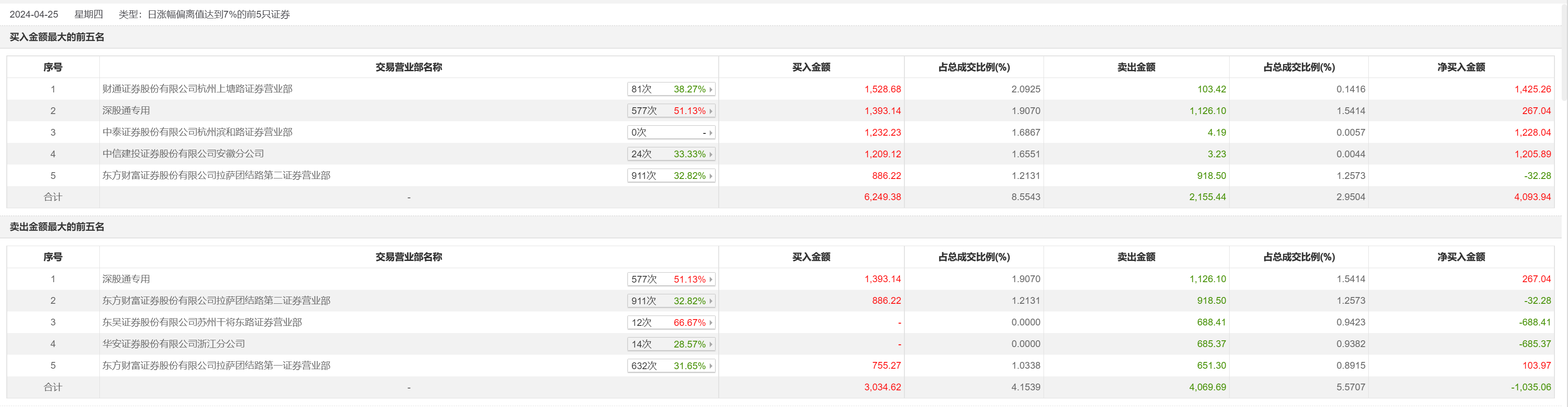 具体来看,财通证券杭州上塘路证券营业部、深股通专用分别买入1528.68万元、1393.14万元;深股通专用、东方财富证券拉萨团结路第二证券营业部分别卖出1126.10万元、918.50万元。