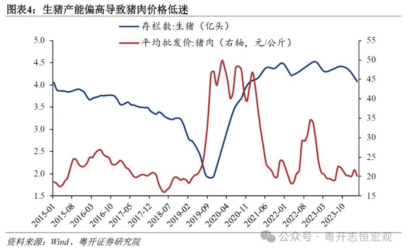 随着国内经济持续恢复,2024年物价将温和回升,预计CPI和PPI同比分别由2023年的0.2%和-3%回升至0.6%和-0.8%。一是基数效应决定了2024年CPI和PPI前低后高的走势,通胀回升的斜率则取决于终端需求的强弱。二是输入性因素的拖累减弱,国际原油、有色、粮食等大宗商品价格同比企稳回升,将对国内相关商品价格形成提振。三是总需求回暖,服务消费需求旺盛,政策推动大规模设备更新和消费品以旧换新,美国补库存周期利好出口,将对相关行业带来积极影响。四是供给端产能去化,部分行业加大供给侧结构性改革,猪肉、上游原材料价格有望企稳。