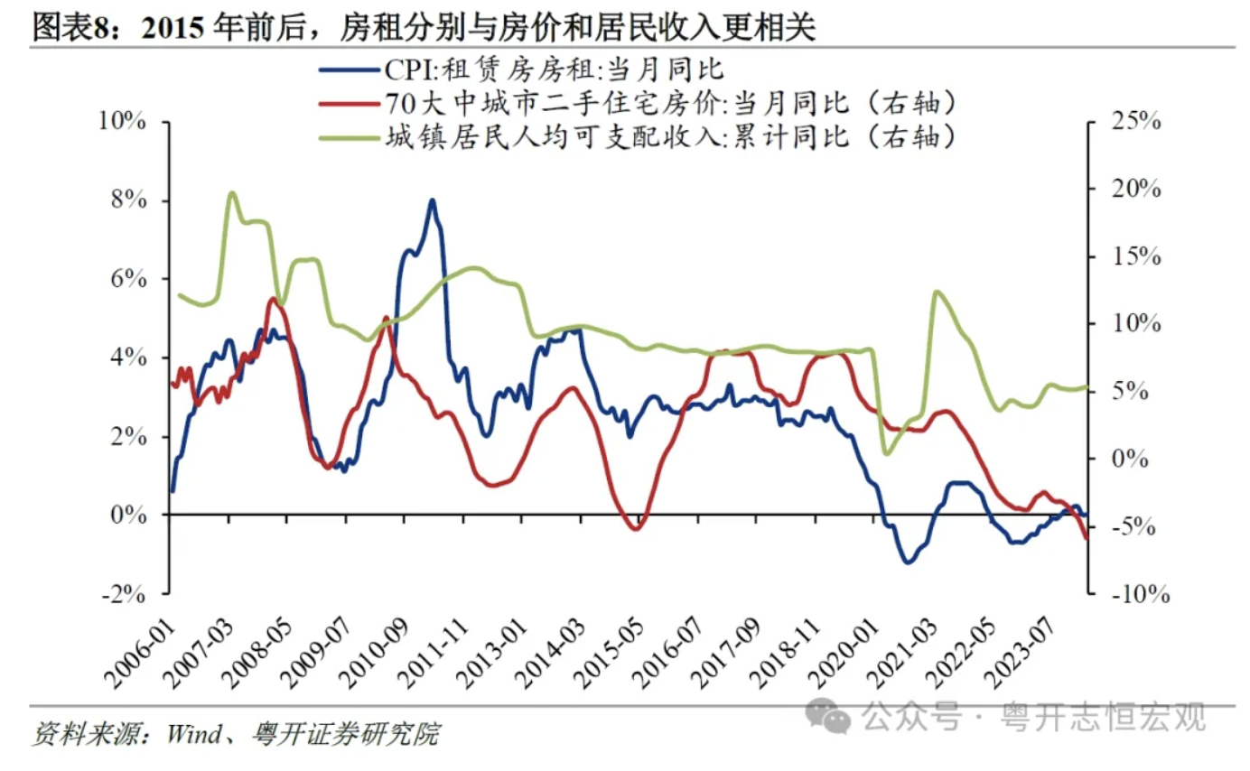 疫情以来,房租价格同比中枢显著下移,由之前的2%以上降至0%左右。值得关注的是,2015年以前,房租与房价走势一致,一是需求端租房和购房是替代品,价格同涨同跌;二是供给端新增房源购房成本上升,出租房屋的要价也会更高。但2015年之后,房租与房价开始背离,与居民收入更为紧密。房价在棚改货币化安置、学区房等因素影响下仍有几轮上涨,但房租并未随之明显变化。相应地,近期房价仍未企稳,但房租已随经济恢复而逐步回升。当然,由于居民收入预期不稳,房租价格同比仍在低位运行。