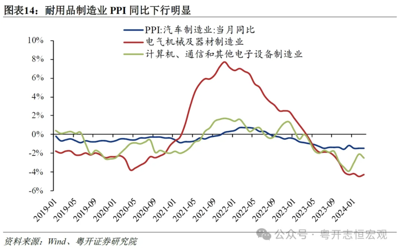 2024年3月耐用品制造业对总体PPI同比向下拉动0.7个百分点。