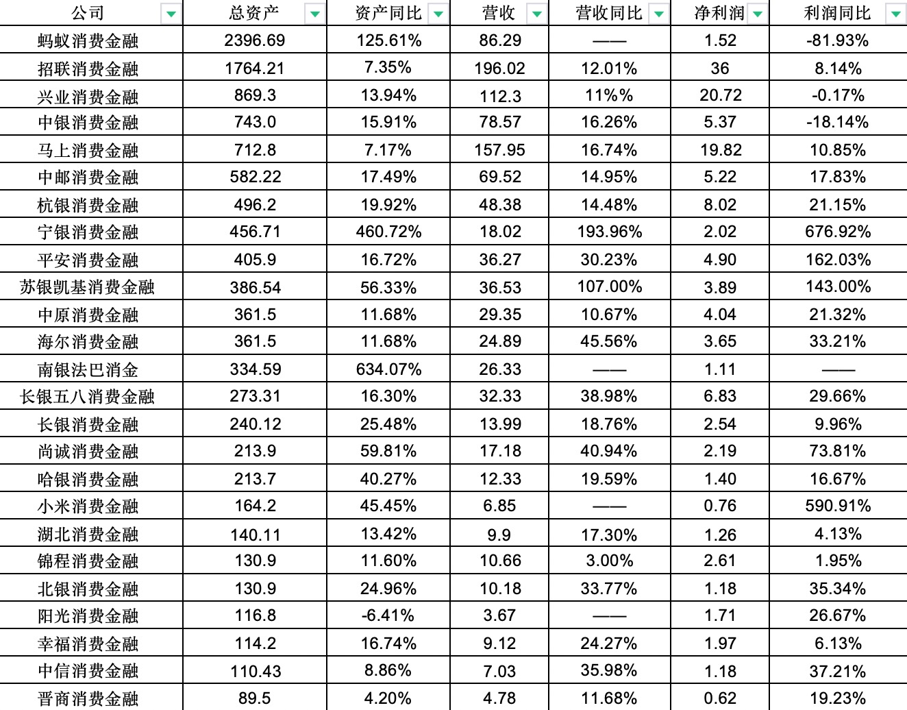 与此同时,界面新闻记者注意到,除了上述两家之外,马上消费、兴业消金、中银消金基本多年来稳定在第一梯队。
