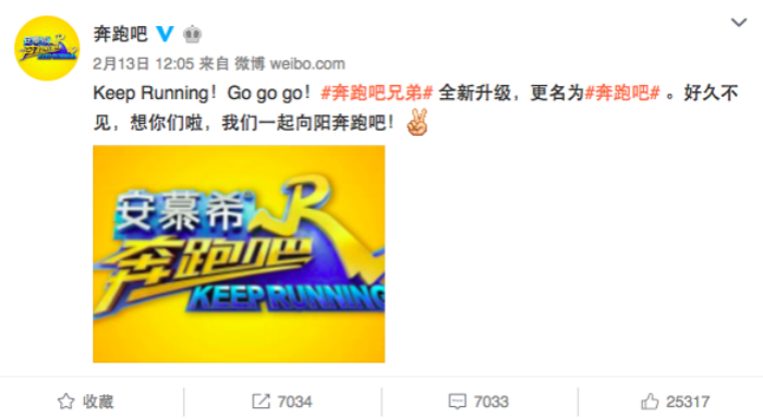 2月13日,《奔跑吧兄弟》官方宣布第五季改名为《奔跑吧》。因为Angelababy产后需要休养,网络上对于她是否退出跑男团以及接替她的人选一直有诸多猜测。