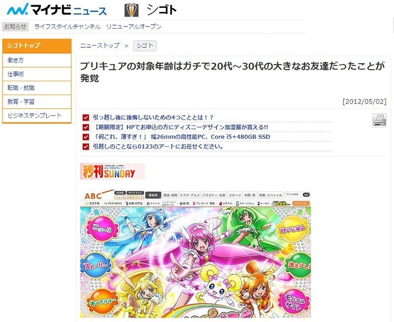 ③ “主要目标是20~30岁男性”并不是东映动画、BANDAI的内部资料,很有可能是指购买DVD的目标用户是20~30岁的男性。
