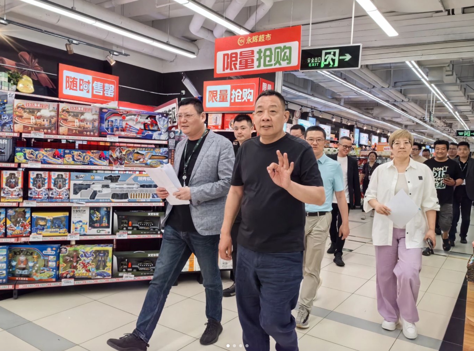 5月7日,他出现在永辉郑州瀚海北金购物广场店里,不少路人将其拍下发到社交网络,随后还引发他的粉丝前来“偶遇于东来”打卡。但不少人没有注意到,与于东来一起同行的还有永辉超市董事长张轩松。