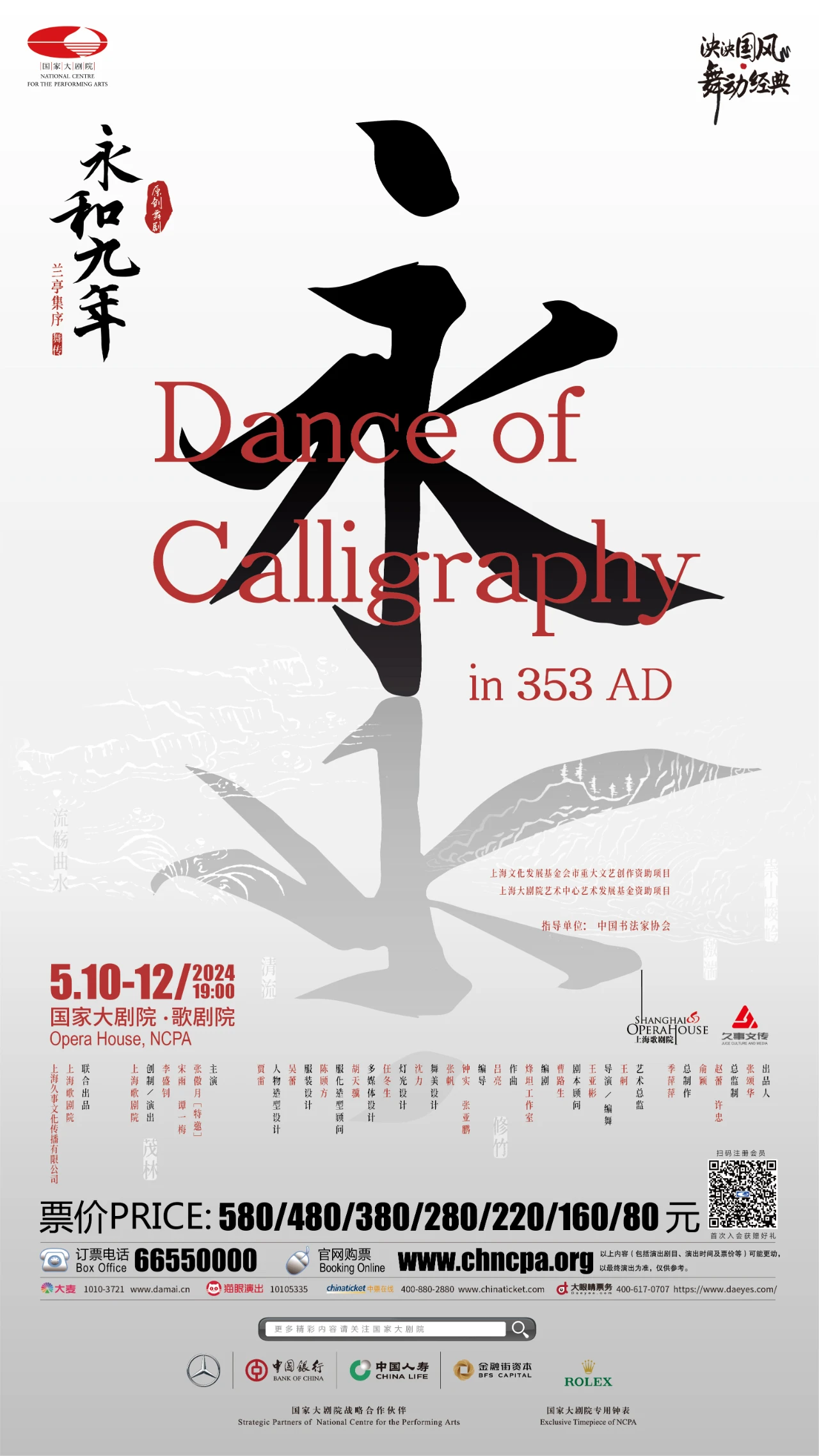 由上海歌剧院打造的原创舞剧《永和九年》——兰亭集序·舞传,灵感正是来自于这部超越时空、跨越国界的中华文化瑰宝。自2023年11月于中国上海国际艺术节首演后,该剧目收获业界和观众的好评。剧目以一名爱好书法的当代青年“赓”为主角,当他凝视着《兰亭集序》,思绪便回到了永和九年,看着会稽山阴中王羲之与文人雅士纷至沓来,在崇山峻岭与茂林修竹之间曲水流觞……该剧目通过“游目骋怀”、“俯仰一世”、“放浪形骸”等共8幕场景,展现了天下第一行书从诞生到传世的历程,并以舞为媒介,引领当代观众穿越历史长河 。