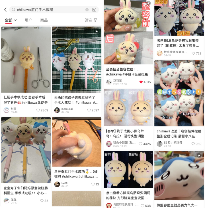 对chiikawa玩偶进行整容,主动制作各种表情包,是粉丝情感投入和文化表达的一种形式,揭示了个性化和创造性活动在现代文化中的核心地位。这种现象也反映了现代社会中人们对亲密、个性化互动的渴望,以及通过这些互动来寻求情感满足的趋势。