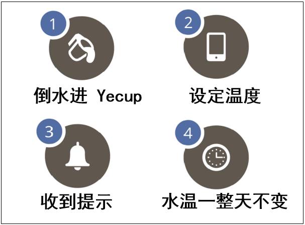 一旦水温达到预设值,Yecup 会通过 APP 通知主人,让你立马补充所需水分。