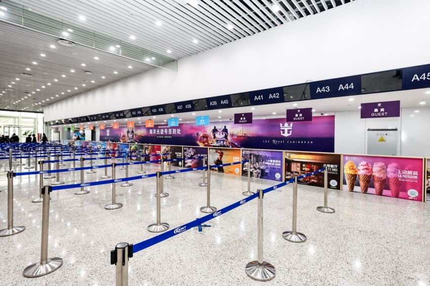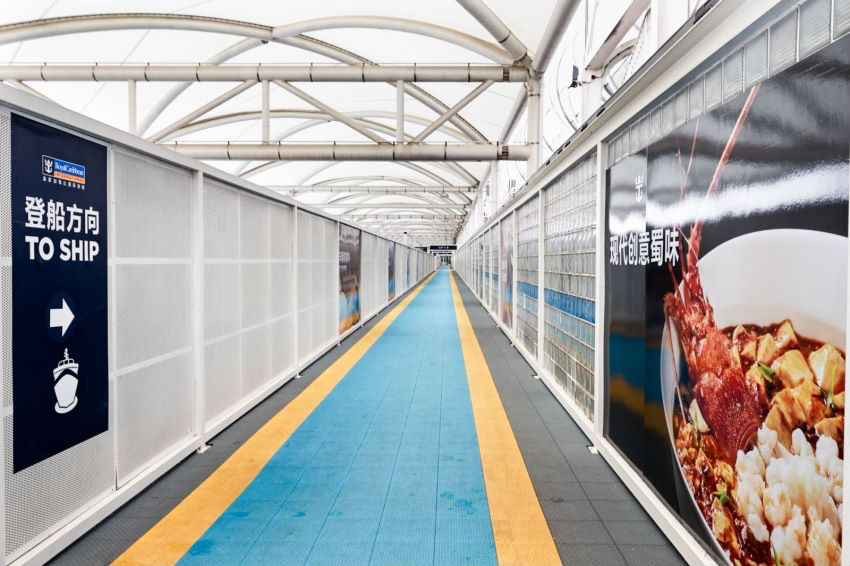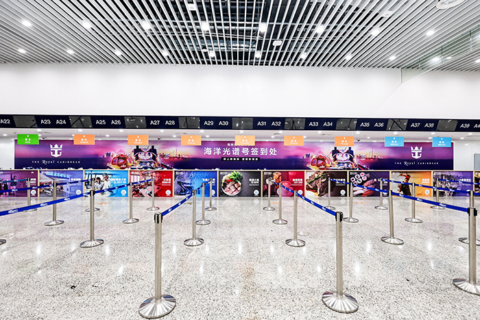 重启邮轮游之后,其实很多的声音都在表达上下船的流程问题,皇家加勒比对这些也做了最大限度的预警。到达港口后就能看到路边站着整排帮忙托运行李的工作人员,可以自由选择是否托运行李。之后按照指示去往邮轮出发大厅,进入大厅后根据工作人员的指示拿着船票打印件和护照办理值机,办完之后过安检和海关。由于船上工作人员特别多,办理登船手续的窗口也很多,因此整个上船流程走下来,几乎没有出现排队的情况。