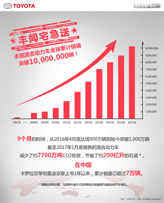 内山田武的最后一句,绝不是客套话语。据丰田统计,截止至1月31日,在全球Prius车主的齐心协力下,共计为全人类节省了2900万升汽油,大约减少了7700万吨二氧化碳排放。