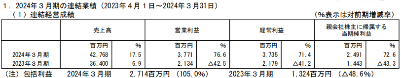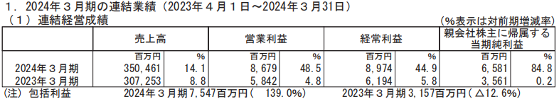 多美 2024年3月期(2023.4-2024.3)业绩