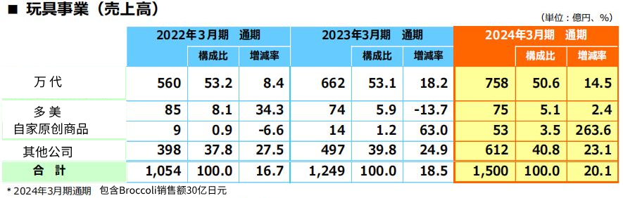 玩具事业年销售额5098.8亿日元,同比增长13.9%,营业利润786.55亿日元,同比增长32.1%。