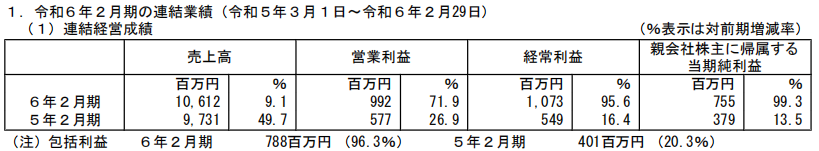 SK Japan 2024年2月期(2023.3.1-2024.2.29)业绩