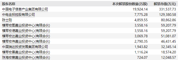 根据计划,深桑达A解禁数量4.93亿股,占总股本比例43.34%,解禁市值82.07亿元。解禁股东共十名,定增三年解禁收益率为48.67%。不过,深桑达A未披露解禁公告,具体解禁日待定。