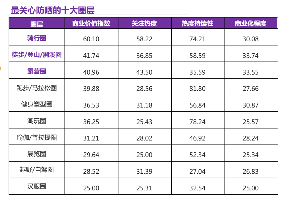 根据艺恩数据统计显示,圈层化是当年社媒文娱的主流趋势,骑行圈、溯溪圈、露营圈是最关心防晒的三大圈层,运动品牌们纷纷进行领域聚焦,针对性的推出防晒服产品。
