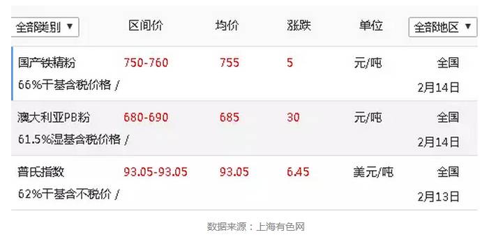 2017年2月14日,情人节,铁矿石普氏指数飙到93.05美元!创造历史高点,振奋人心!