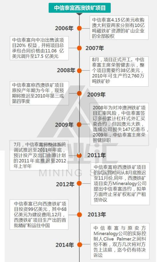 中信泰富西澳铁矿项目是中国企业迄今为止在海外矿产资源领域最大的投资项目之一,同时也是澳大利亚资源领域为数不多的中资100%控股项目。