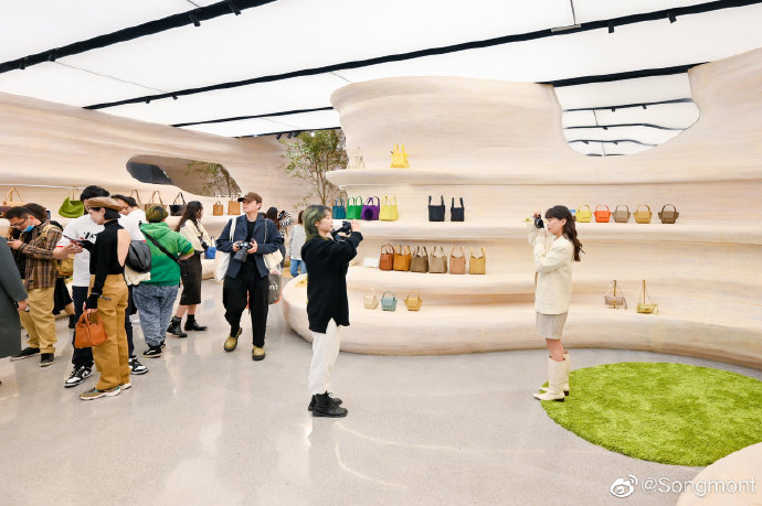 Songmont的扩张是从熬过服饰品牌纷纷收缩的疫情开始的。2021年,Songmont在上海淮海中路开设了第一家旗舰店,从线上走到了线下。付崧在前述采访中表示,决定走向线下的决定性因素是要让消费者看得见、摸得着,手感和上身效果是线上图片拍得再好也无法替代的体验感。