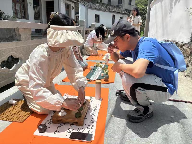 “漫步在传统中式村庄里,搭配着优雅的茶艺、清新的茶香,让我沉浸式地感受到了中国传统文化的浪漫。”带着一家人出游的何先生表示,这种将传统文化与现代旅游相结合的方式很新颖,让他们在旅行中不仅欣赏到了美丽的风景,还体验到了独特的中国茶文化。“不仅我们大人觉得有意思,孩子们也都很喜欢”。“大学生不仅茶泡得好,而且温文尔雅,为我介绍了不少宁波的历史文化,这趟真是来对了!”从上海远道而来的老者胡大爷也乐呵呵地为宁财院的同学们竖起大拇指。