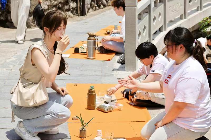 “春夏交替,清水涟漪,清茗飘香,走累了就能席地而坐赏景品茶,这个意境绝了!”“在这里以茶会友,好不惬意啊!”……5月19日,走进东钱湖洋山村的游客们都被宁波财经学院大学生们的“茶会”所吸引,只见一人一席沿着乡村步道排开,临水傍景,别具意境。