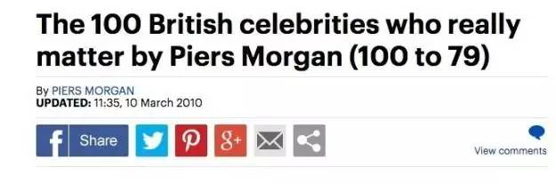 这篇赞颂短文是摩根自己在六年前写的!叫做“最重要的100位英国名人”榜单,罗琳排在第97位。