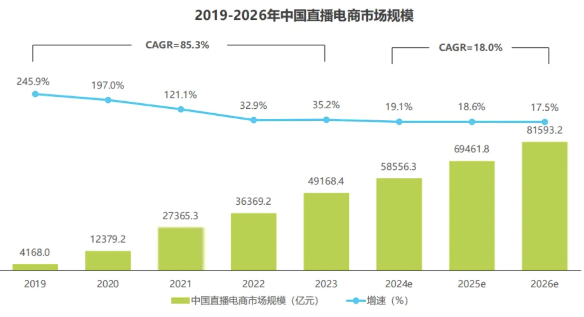与此同时,头部MCN的重要营收依然来自于直播电商,但这个市场已走过高增长阶段。2023年,中国直播电商市场规模为4.9万亿元,同比增长35.2%,相比行业发展早期,增速已出现明显放缓。