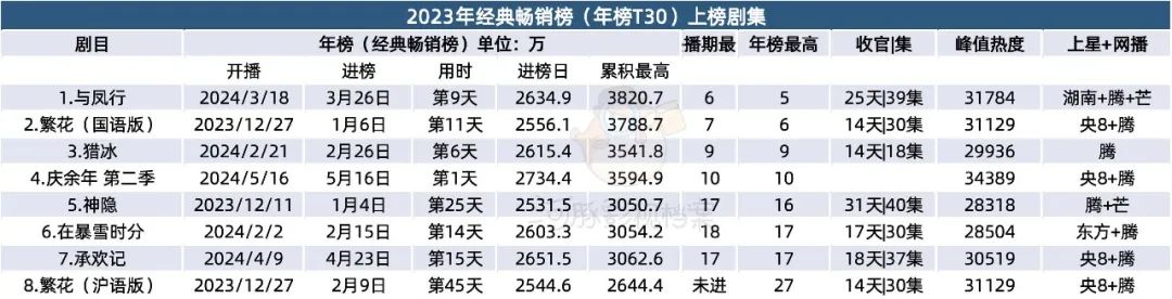在经典畅销榜中,《庆余年2》排名第十,进榜用时仅为1天。对比其他热播剧集,《与凤行》进榜用时9天、《繁花》(国语版)进榜用时9天,《庆余年2》1日进榜的成绩格外亮眼,展现出其强大的拉新能力。
