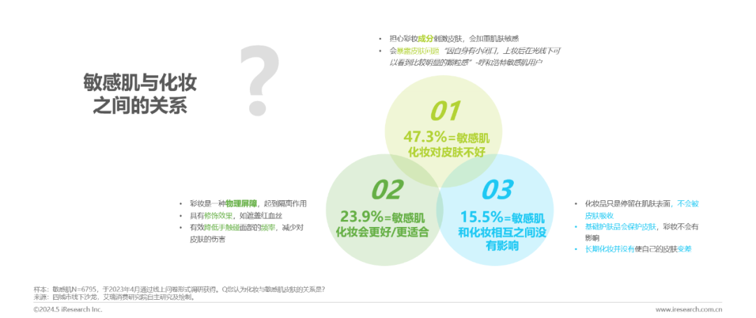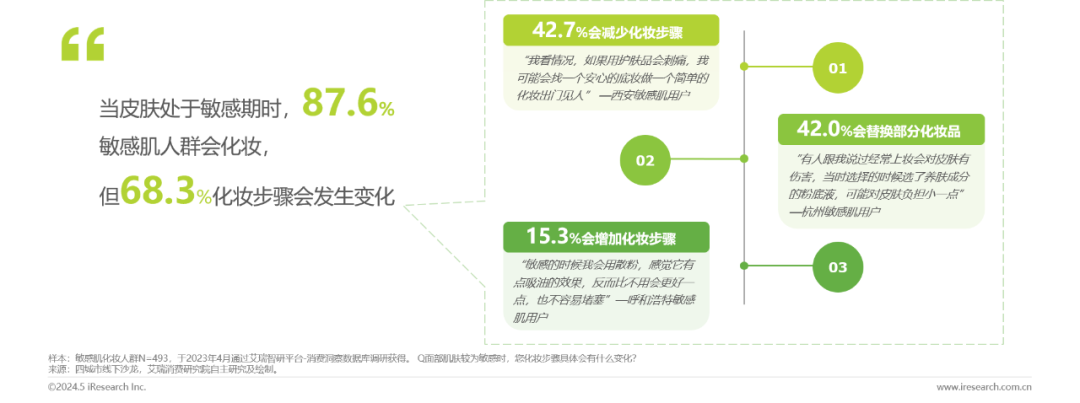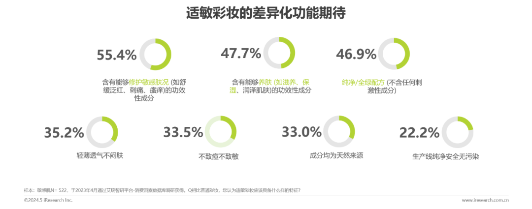 敏感肌人群中有超过五成期待彩妆产品的护敏养肤功效,维持皮肤稳定且不加重皮肤敏感。