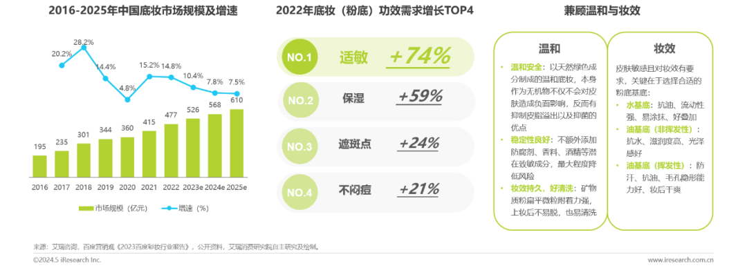 底妆:除基础妆效外,用户追求成分天然安心和轻薄透气
