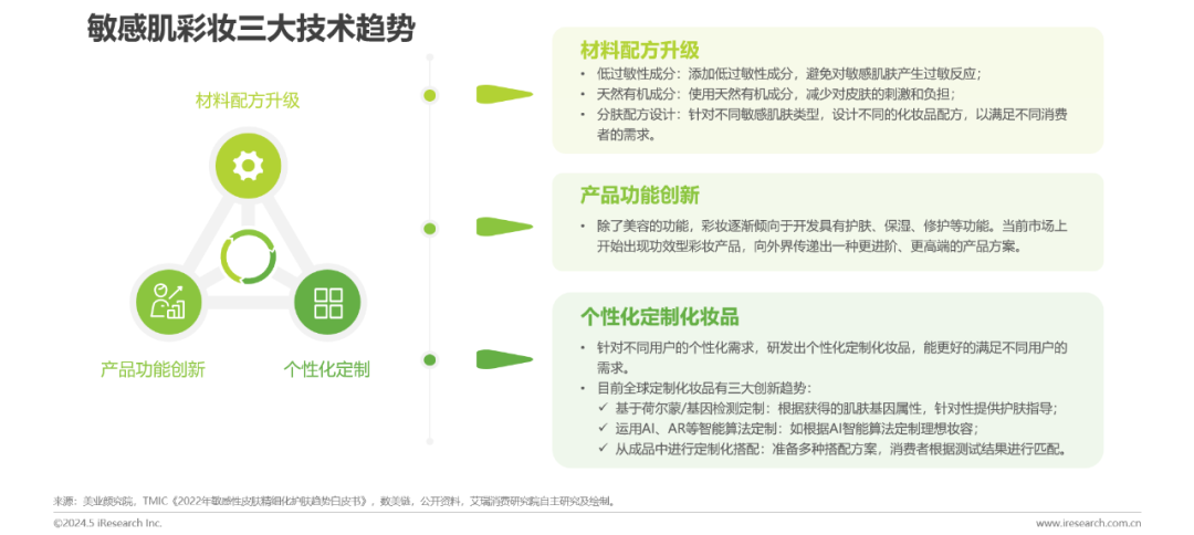 技术趋势:敏感肌适用化妆品的核心技术主要是在材料配方、功能创新、个性化定制等方面不断突破和发展;