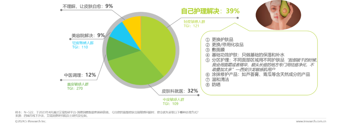 39%的敏感肌人群采用自我护理方式应对敏感肌