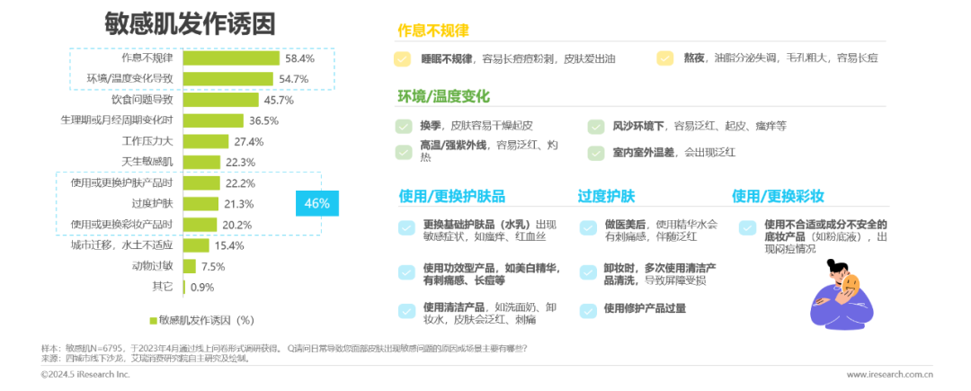 作息不规律、环境/温度变化是敏感肌重要诱因